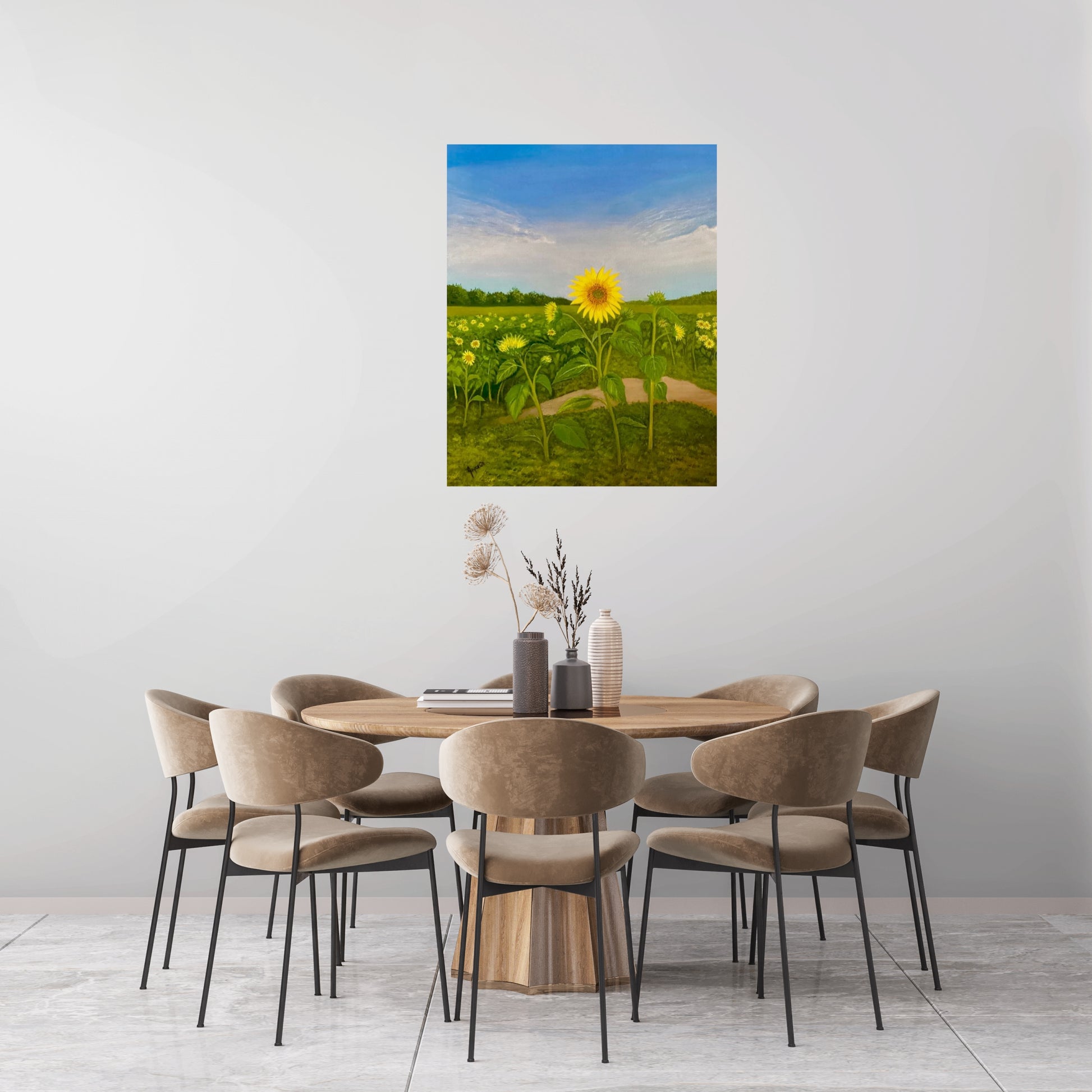 This Sunflower inspired canvas print will bring a sense of beauty and productivity into your space. Perfect for nature lovers and those who appreciate floral beauty, Ideal for home decor, gift giving, this painting print will brighten and make a bold statement in any room
